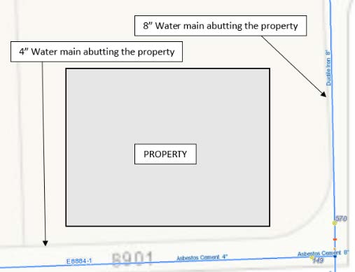 Note: For water main location check Request Lateral Location or As-built to verify if there are water lines abutting the property before applying for Service Installation Request (SIR)
